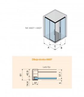 Frente de Ducha Fijo + Puerta Corredera Abatible + Lateral Fijo